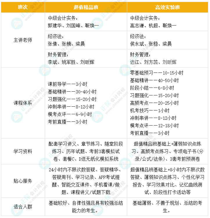 中级会计师备考离不开书、课、题,其中课程的选择尤其重要,适合自己的才是最好的。超值精品班和高效实验班作为网校的经典课程一直被拿来比较,那么超值精品班和高效实验班有哪些区别呢?今天正小保就给大家列举一下~