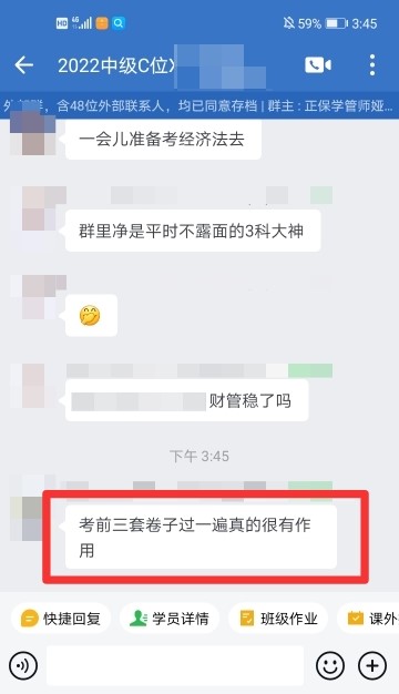 2023年中级会计财管第二批次考试结束后,C位夺魁班学员除了在群里反馈考情外,也提到了做密卷的重要性!还没上考场的同学还有时间,再去过一遍密卷吧!