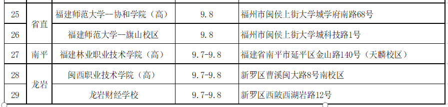 三、福建考区考点分布情况
