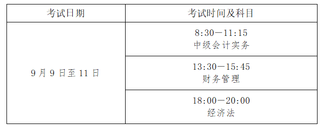 中级资格考试于2023年9月9日至11日举行,共3个批次。报考人员根据准考证上规定的时间和地点,凭准考证和居民身份证(港、澳、台居民凭本人有效身份证明)参加考试。各科目具体考试时间如下: