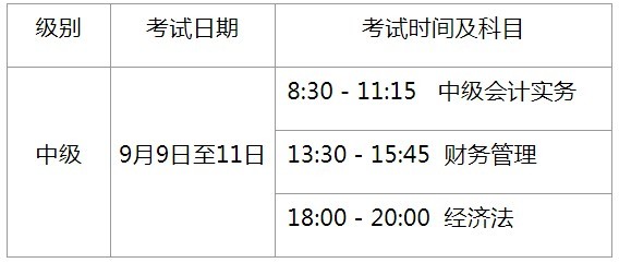 中级资格考试于2023年9月9日至11日举行,共3个批次,具体安排如下: