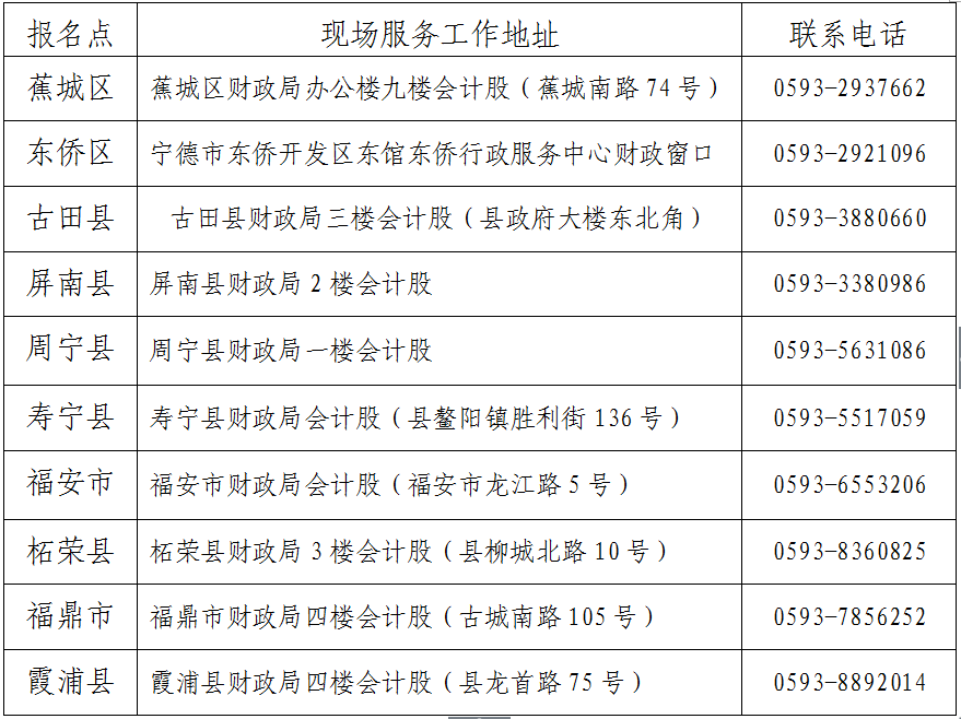 报考人员按属地原则选择报名点。工作单位在宁德市区的市直单位、中央驻宁单位、驻宁部队的报考人员按单位地址属地选择报名点,网上报名入口选择“宁德”——“蕉城区报名点”或“宁德”——“东侨区报名点”;其他市直单位、各县(市、区)单位的报考人员以及符合报名条件的在校学生按属地要求,网上报名入口应选择“宁德”——“xx县(市、区)报名点”。此外,符合报名条件的其他人员,也可选择在其户籍所在地或居住地报名。