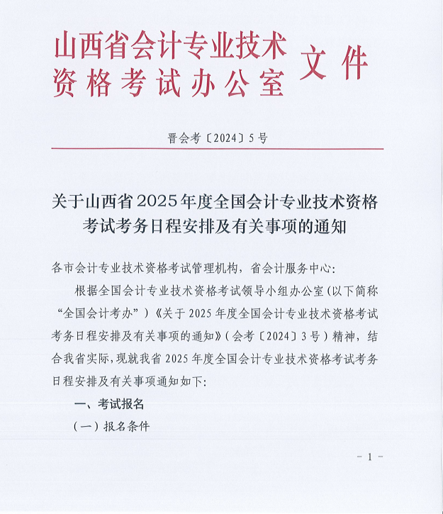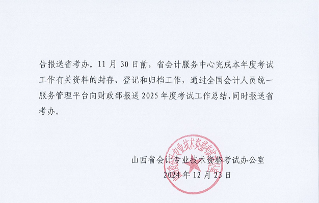 山西发布2025年度全国会计专业技术资格考试考务日程安排及有关事项的通知,以下为具体通知内容: