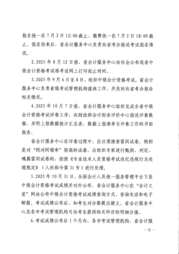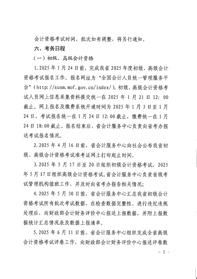 关于山西省2025年度全国会计专业技术资格考试考务日程安排及有关事项的通知