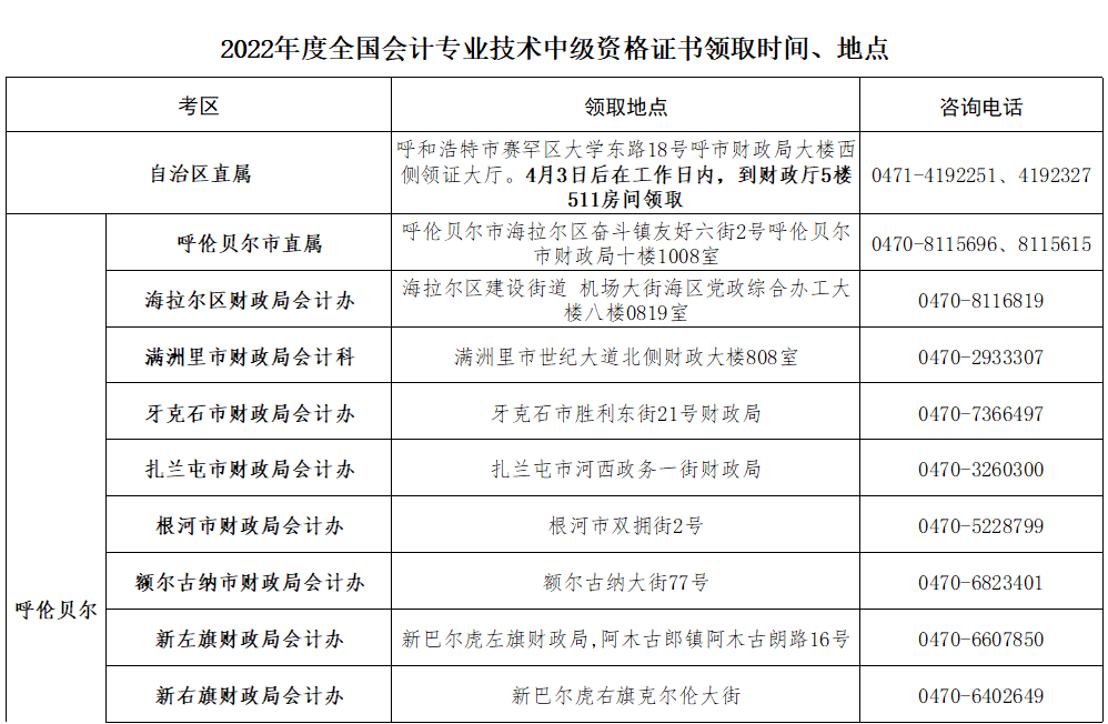 内蒙古自治区会计专业技术资格考试办公室关于2022年度内蒙古自治区全国中级会计专业技术资格考试合格人员领取资格证书的通知