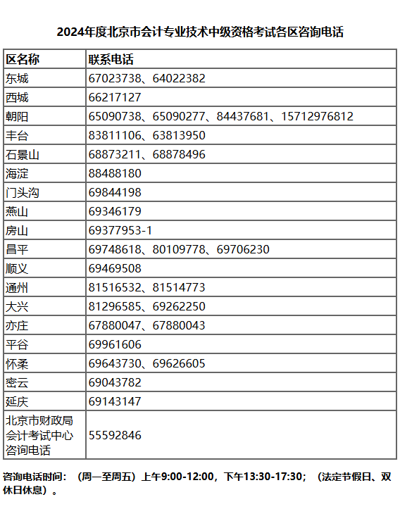附北京各区考试报名咨询电话,同学们如有疑问可致电咨询。