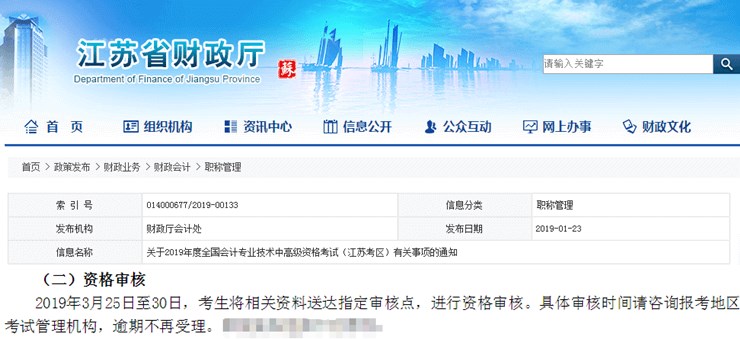 江苏省财政局发布2019年中级会计职称报名简章中,规定资格审核3月25日-30日,仅有6天,逾期不再受理。给自己上个闹钟吧,不要因为错过资格审核绊住了成功的脚步。
