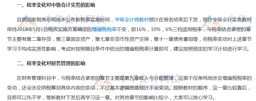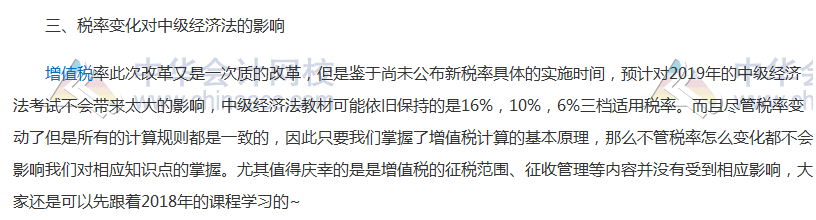 看完以上分析,增值税税率变化对中级会计职称备考的影响,您是不是一目了然啦,总体来说,增值税税率变动对中级备考影响并不是非常重大,大家放心备考吧。
