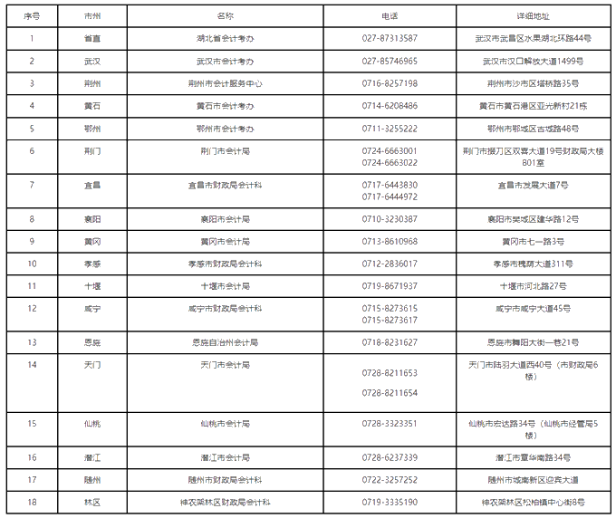 附件:湖北省各市州会计管理机构联系电话地址一览表