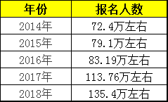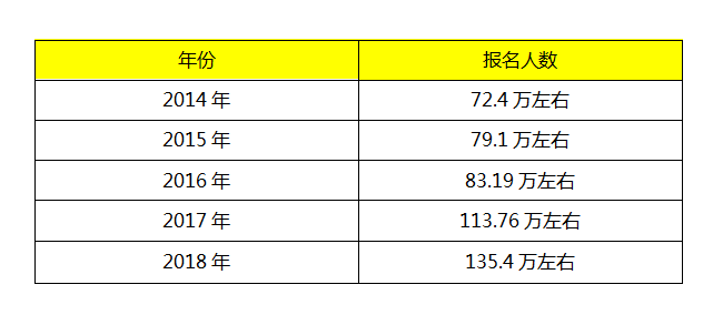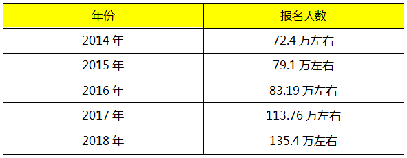 由上表可以看出,中级会计职称报名人数呈上升趋势,我们可以大胆预测2019年报名人数将持续增长,可能2019年中级会计职称报名人数即将超过150万人。