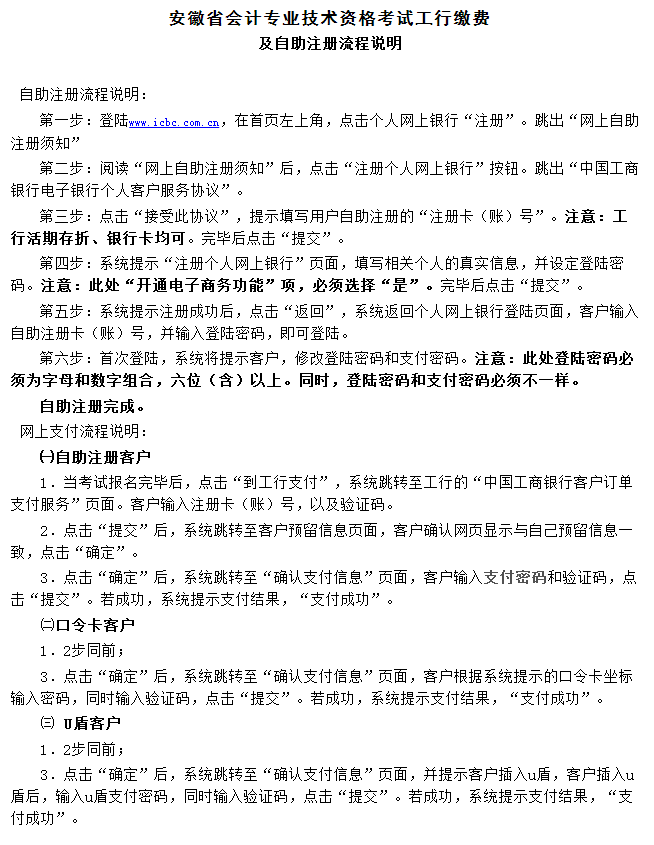 附件:《安徽省会计专业技术资格考试工行缴费和自助注册流程说明》