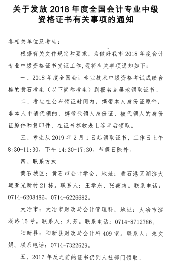 黄石的小伙伴们看过来!2018年湖北黄石中级会计职称合格证可以领取了!黄石的考生从2019年2月1日起可以携带身份证到相关地点领取哦!关于2018年湖北黄石中级会计职称合格证领取的具体情况,我们一起来看看吧!