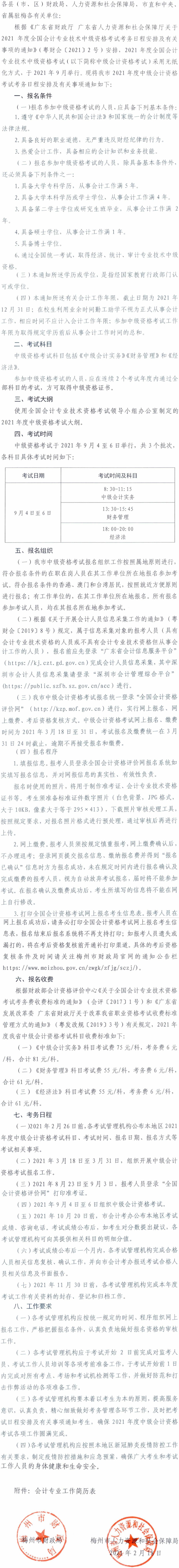 关于梅州市2021年度全国会计专业技术中级资格考试考务日程安排及有关事项的通知(梅市财会[2021]1号])
