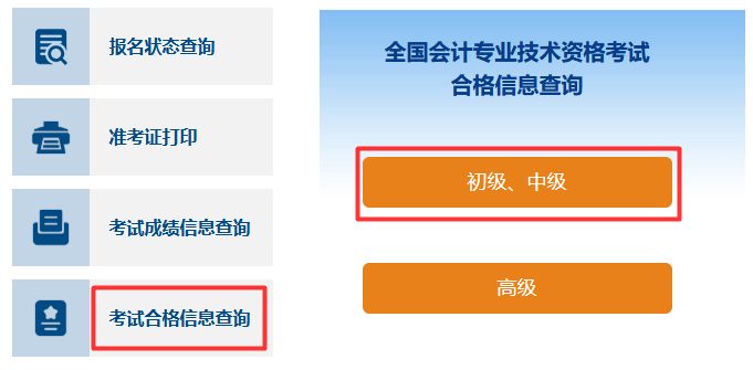 1、点击全国会计资格评价网首页-考试合格信息查询-选择中级