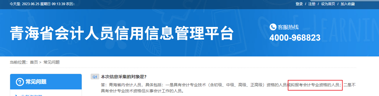 其次,在青海省会计人员信用信息管理平台网站-常见问题模块,可见: