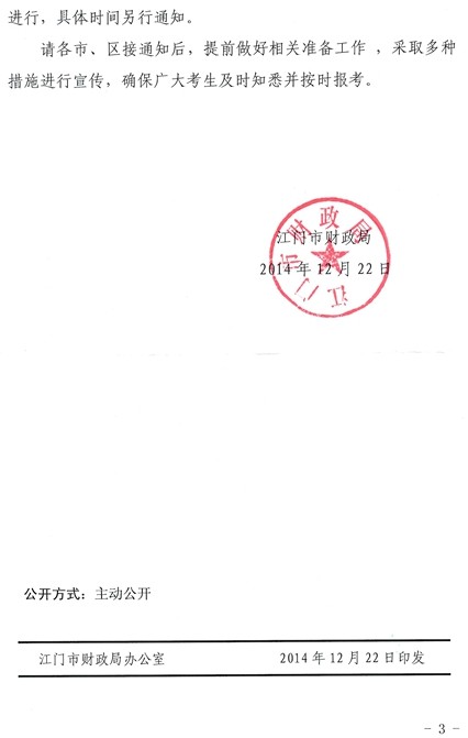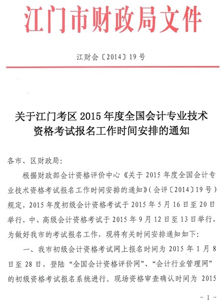 关于江门考区2015年度全国会计专业技术资格考试报名工作时间安排的通知