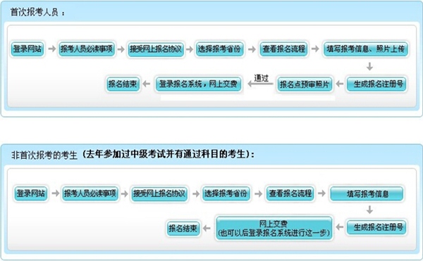 全省初级网上报名注册时间为2015年1月10日至1月30日,缴费时间为2015年1月10日至1月31日。全省中、高级网上报名注册时间为2015年4月10日至4月29日,缴费时间为2015年4月10日至4月30日。报名工作不安排补报名。