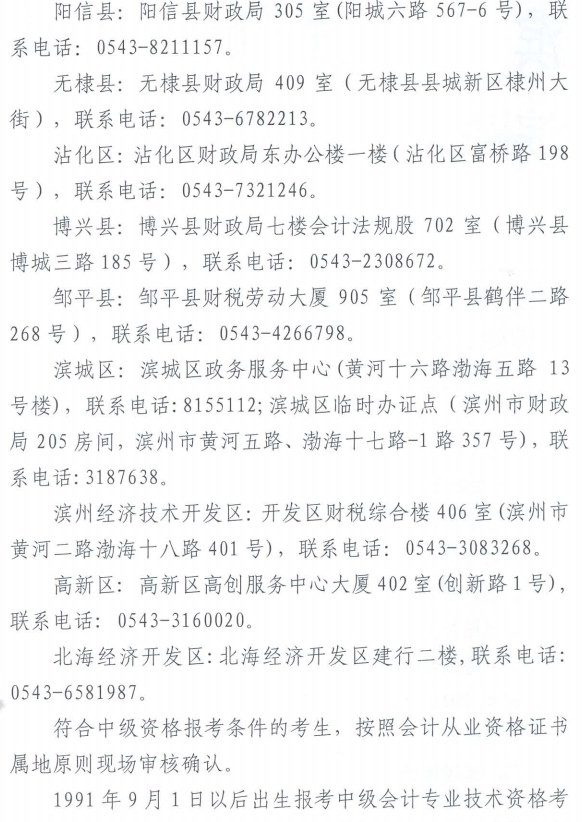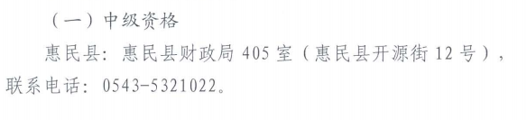 | 博兴县 | 博兴县财政局七楼会计法规股702室(博兴县博城三路185号) | 0543-2308672 |