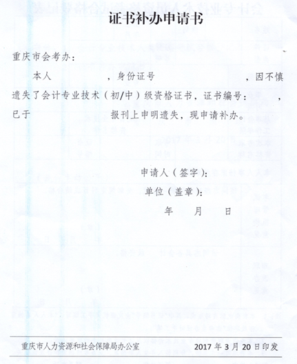 重庆市会计专业技术资格考试办公室(地址:两江新区湖霞街6号)受市职称改革办公室委托,具体承办2016年及以后参加中级会计职称考试取得的中级会计职称证书核发工作。