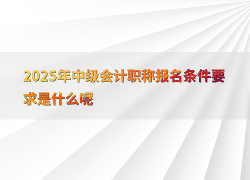中级会计职称报名需满足基本条件,如遵守法律法规、具备职业道德等。同时,考生需满足学历与工作年限要求。具体如下: