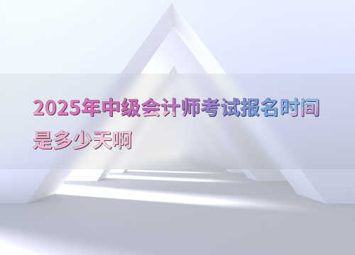 2025年中级会计师考试的报名时间从6月12日开始,至7月2日截止,报名周期为21天。