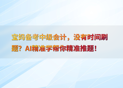 AI精准学帮你解决时间难题!宝妈备考中级会计,既要照顾家庭又要学习,时间总是不够用?别担心,AI精准学能帮你精准推题,高效学习。