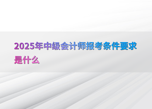 2025年中级会计师考试要求报名人员具备高中及以上学历,且需满足相应的会计工作年限。
