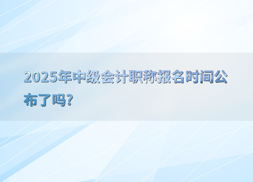 2025年中级会计职称报名时间已公布,时间为6月12日至7月2日。