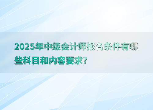 2025年中级会计师考试要求报名人员具备高中及以上学历,且满足相应的会计工作年限。