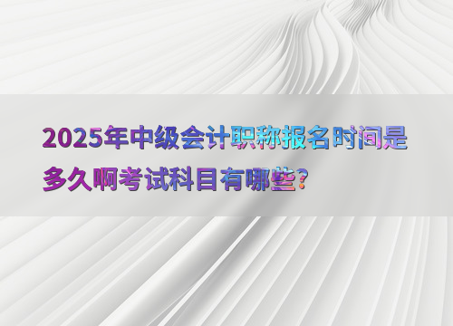2025年中级会计职称报名时间为6月12日至7月2日。