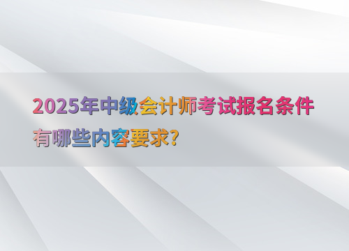 2025年中级会计师考试报名需满足基本条件,包括遵守会计法律法规、具备良好职业道德及相应专业技能。