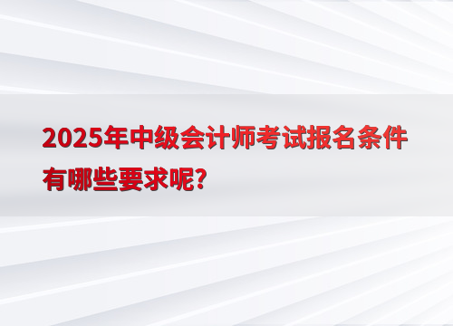 2025年中级会计师考试报名需满足基本条件,包括遵守会计法律法规、具备良好职业道德及相应专业技能。