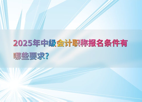 2025年中级会计职称报名需满足基本条件,包括遵守会计法律法规、具备良好职业道德及相应会计专业技能。