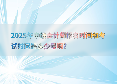 2025年中级会计师考试报名时间为6月12日至7月2日。
