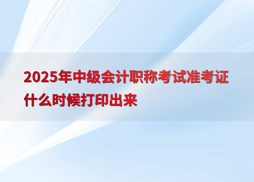2025年中级会计职称考试准考证打印时间为8月12日至9月8日之间,各地区公布时间不一。