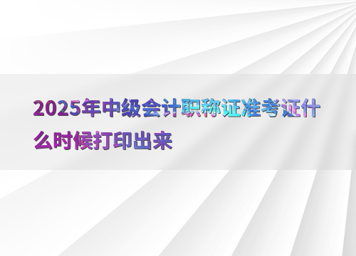 2025年中级会计职称考试准考证打印时间为8月12日至9月8日之间,各地区公布时间不一。