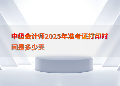 2025年中级会计职称考试准考证打印时间为8月12日至9月8日之间,具体时间因地区而异。