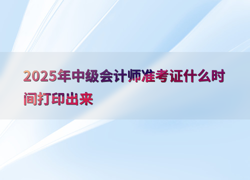 2025年中级会计职称考试准考证打印时间为8月12日至9月8日,各地区公布时间不同。