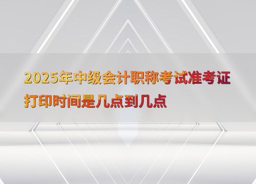 2025年中级会计职称考试准考证打印时间为8月12日至9月8日,具体时间因地区而异。