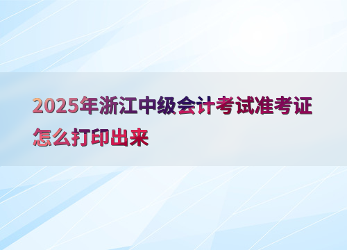 2025年浙江中级会计考试准考证打印时间为8月27日至9月8日,考生需在此期间登录全国会计资格评价网完成打印。
