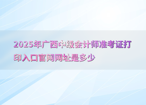 2025年广西中级会计师准考证打印时间为8月18日至9月8日,考生需登录全国会计资格评价网(http://kzp.mof.gov.cn/)进行打印。