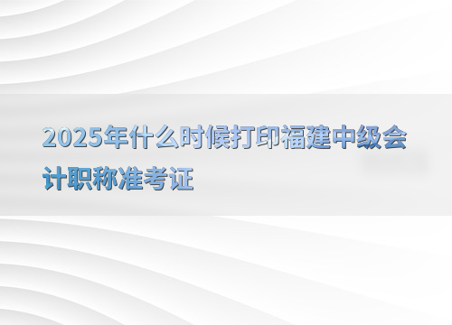 2025年福建中级会计职称准考证打印时间为8月26日8:00至9月7日18:00,考生需在此期间登录全国会计资格评价网完成打印。