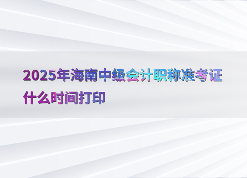 2025年海南中级会计职称准考证打印时间为8月22日至9月8日,考生需在此期间登录全国会计资格评价网完成打印。