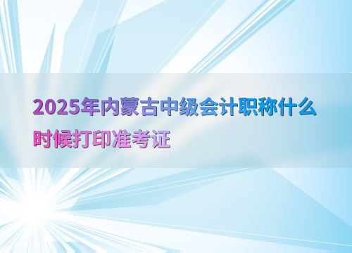 2025年内蒙古中级会计职称准考证打印时间为8月29日至9月5日,考生需在此期间登录全国会计资格评价网完成打印。