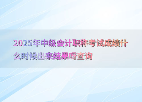 2025年中级会计职称考试成绩预计在10月31日公布,考生可通过全国会计资格评价网查询。