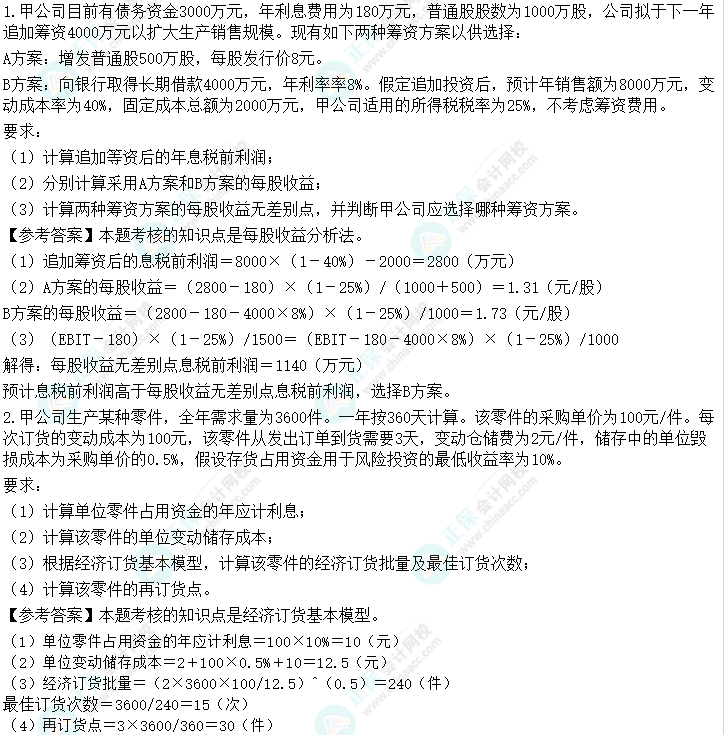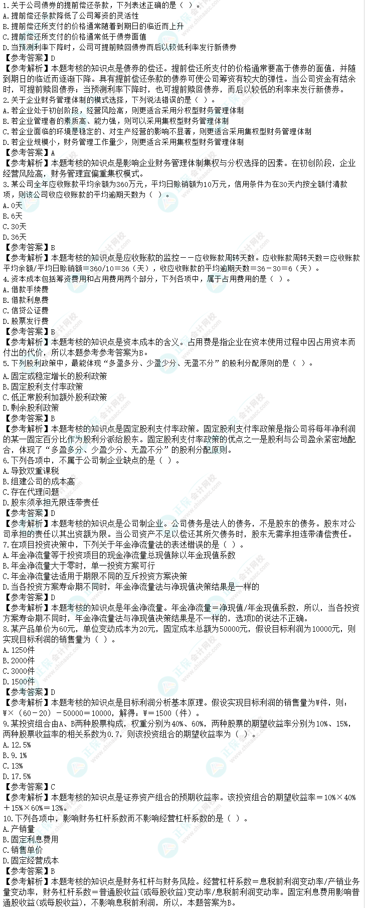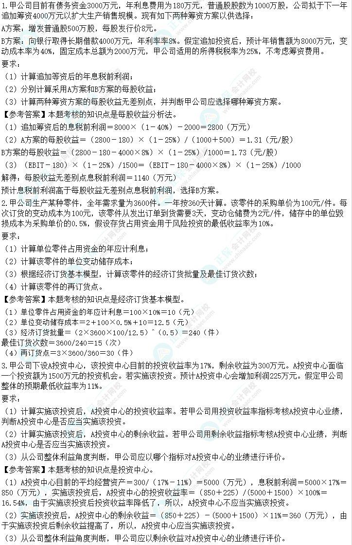 试卷内容由正保会计网校论坛考生提供,网校教研团队整理