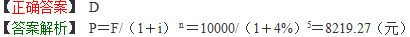 某人为了5年后能从银行取出10000元,在复利年利率4%的情况下,当前应该存入( )元。