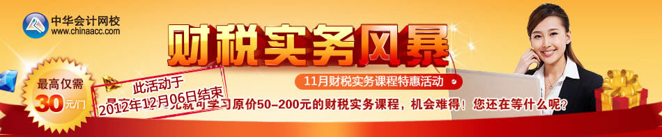 活动目的:随着注会和职称考试的结束,财务岗位又迎来一个招聘高峰。要参加财会实务工作的你,准备好了吗?正保会计网校为帮助更多会计人学习财税知识、提高工作能力、解决实务问题、提升职业竞争力,隆重推出“财税实务风暴”——11月财税实务课程特惠活动。