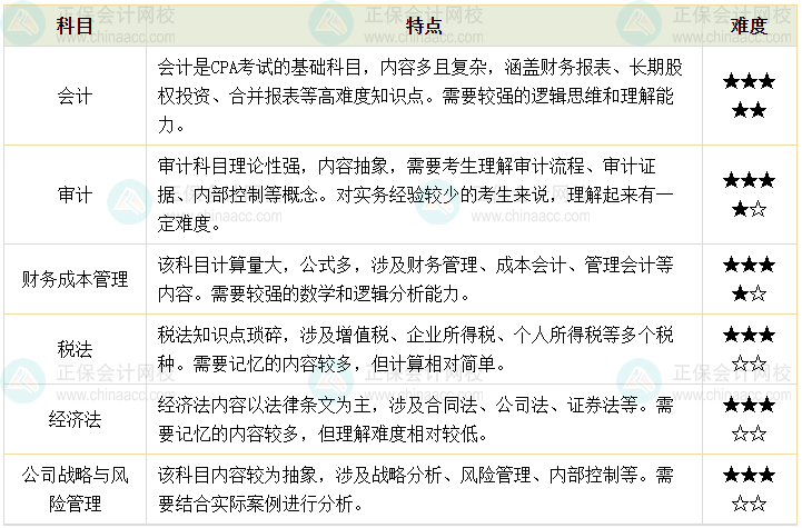 审计和财务成本管理紧随其后,分别因为其理论性强和计算量大而被认为难度较高。