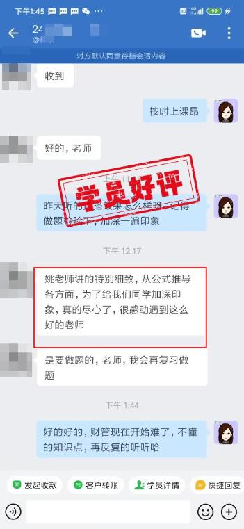 “姚老师讲的特别细致,很感动遇到这么好的老师”
